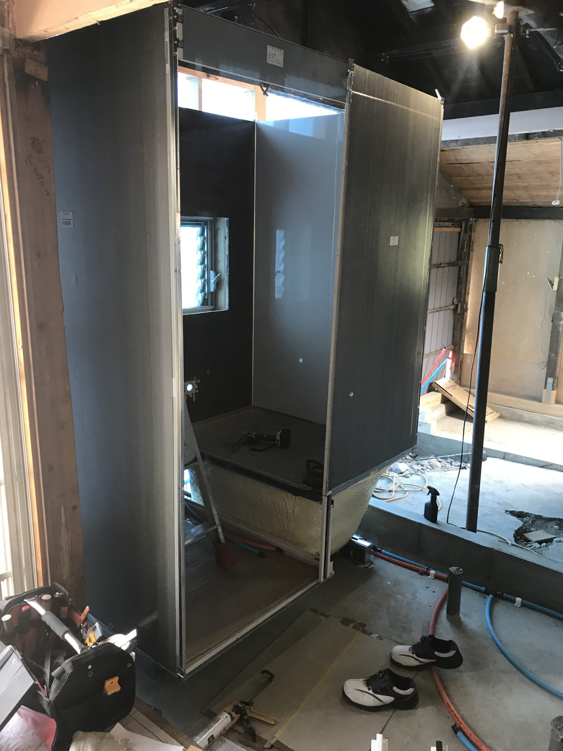 天井を引きはがし、壁を抜き、床を壊し、ユニットバスをはめた。