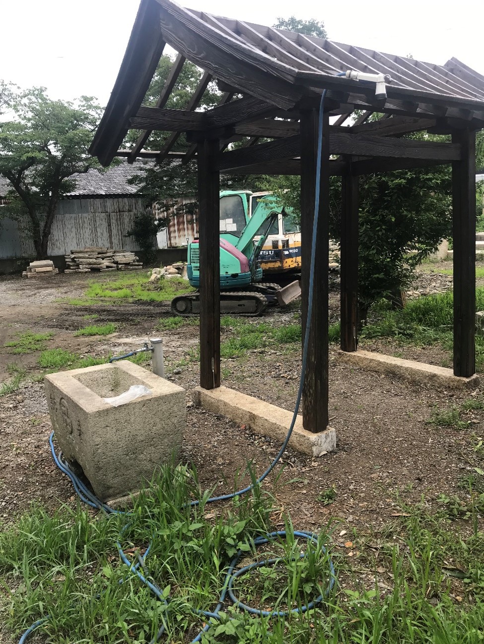 風呂が完成するまでの半年間、庭のホースで行水した。